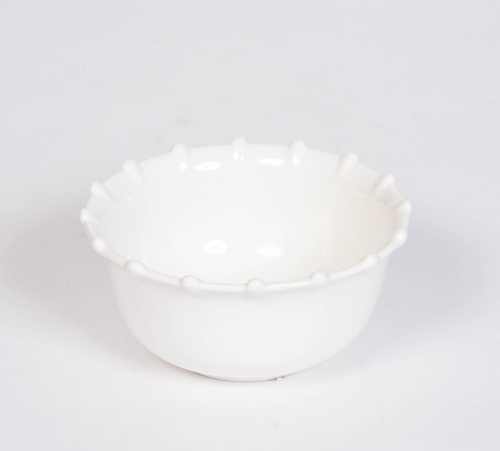 A ideal every day or starter dinner service in white but with an interesting design on the edge to make it more interesting.
