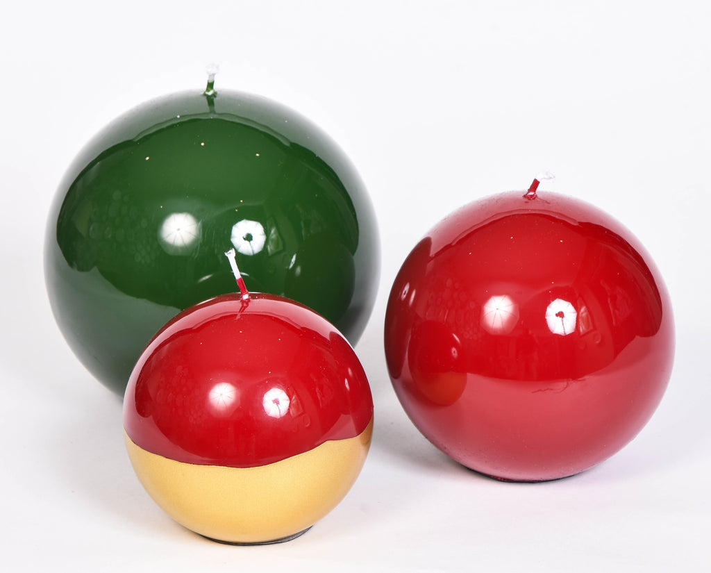 These lacquered unscented candles are fun when grouped together in different sizes or as a stand alone piece. They burn inwards so as to keep their spherical shape.