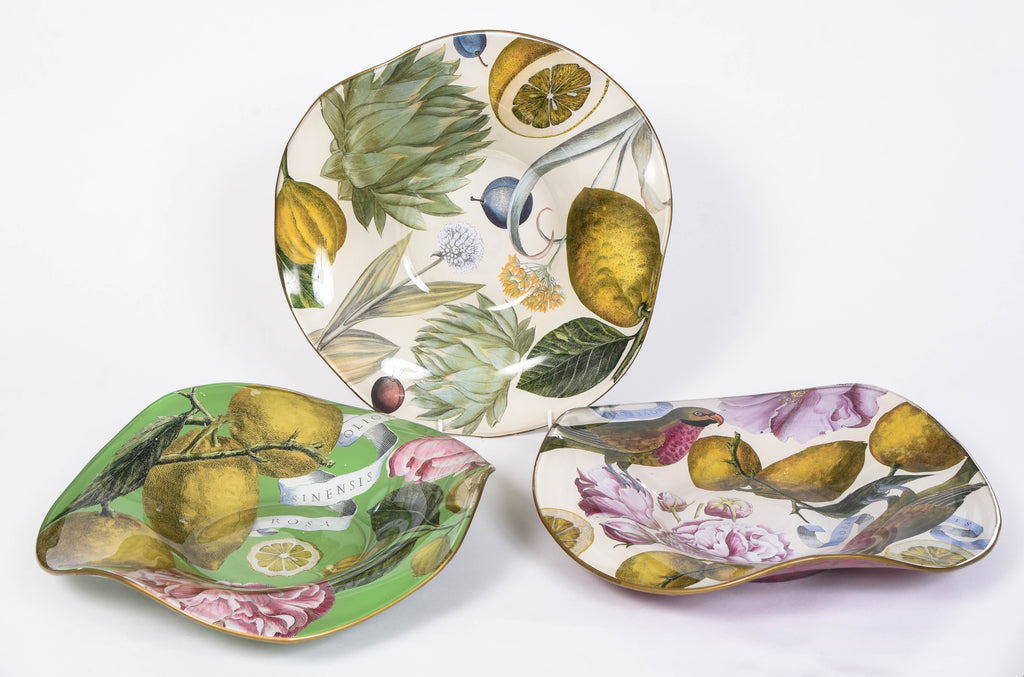 These pretty decoupage plates are handmade in England with paper designed by our talented friend Alex.